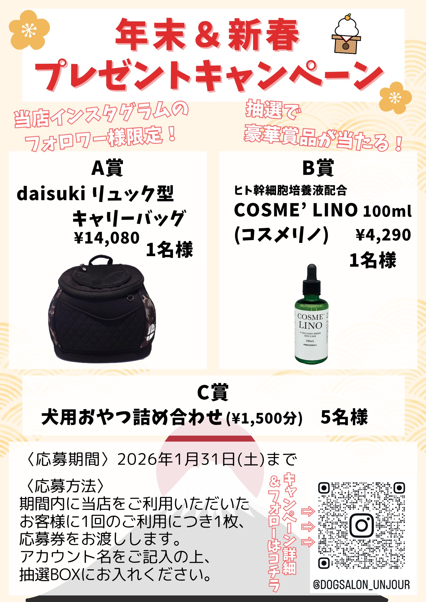 抽選で豪華賞品が当たる!『年末&新春プレゼントキャンペーン🎁』を実施いたします!👏