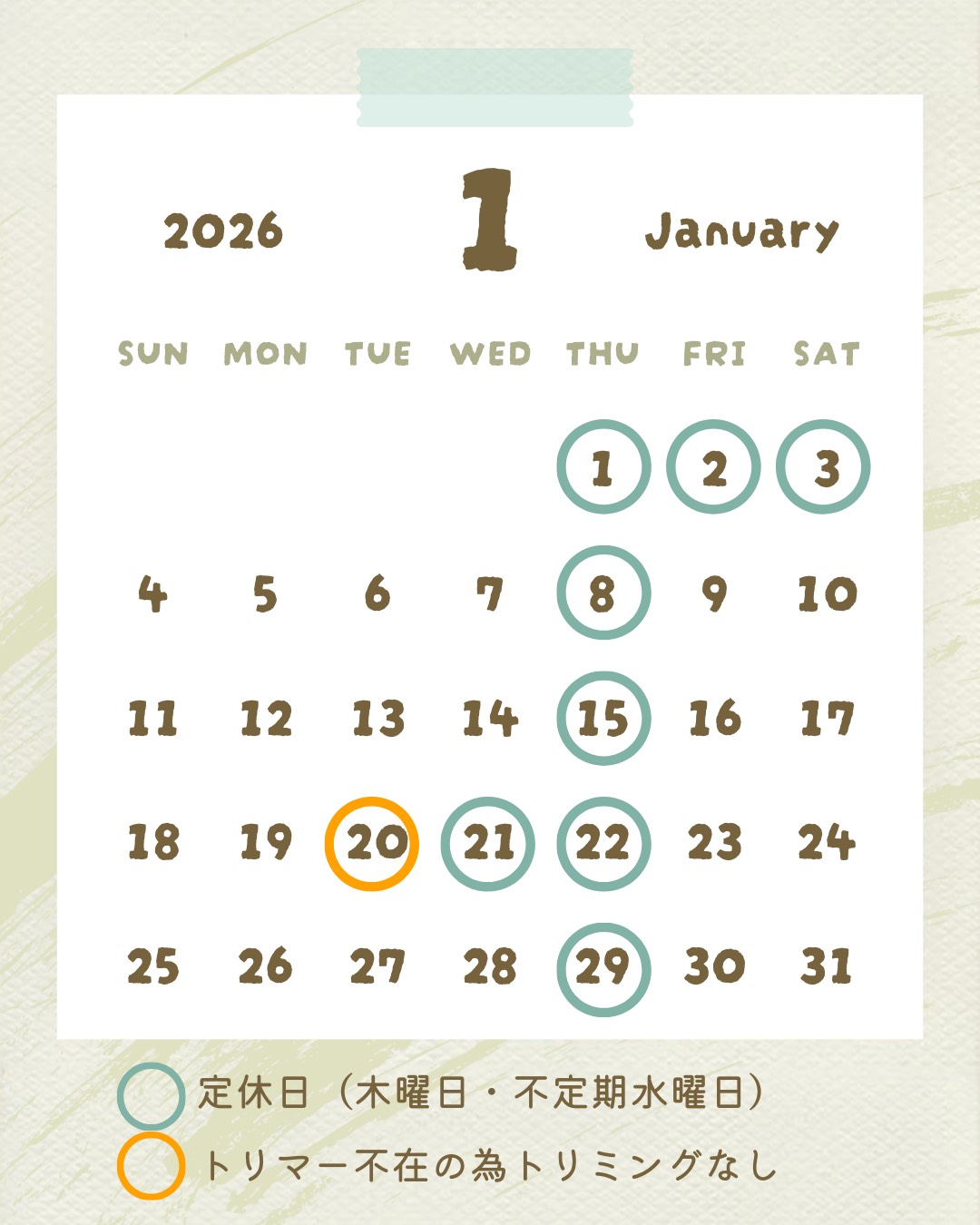印のついた日が定休日です🐾